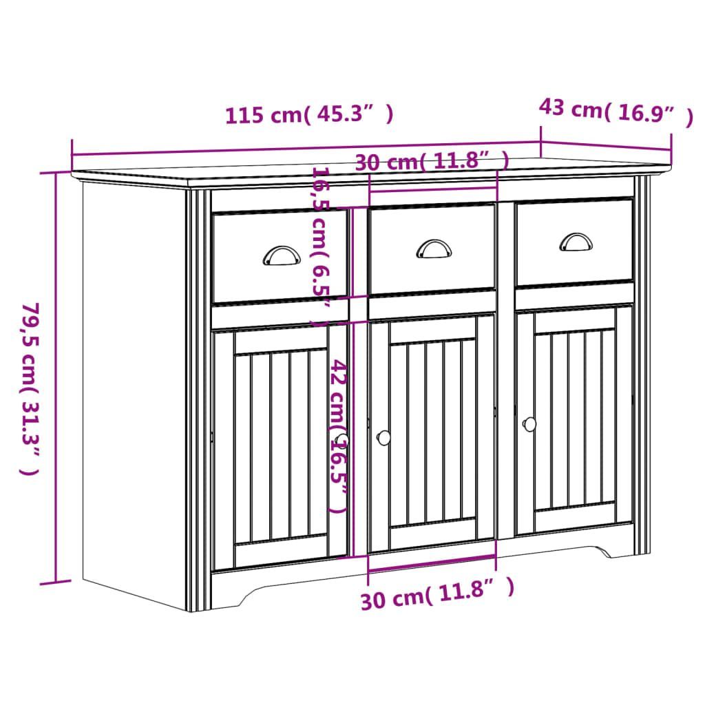 vidaXL vidaXL Highboard BODO Weiß 115,5x43x200,5 cm Massivholz Kiefer
