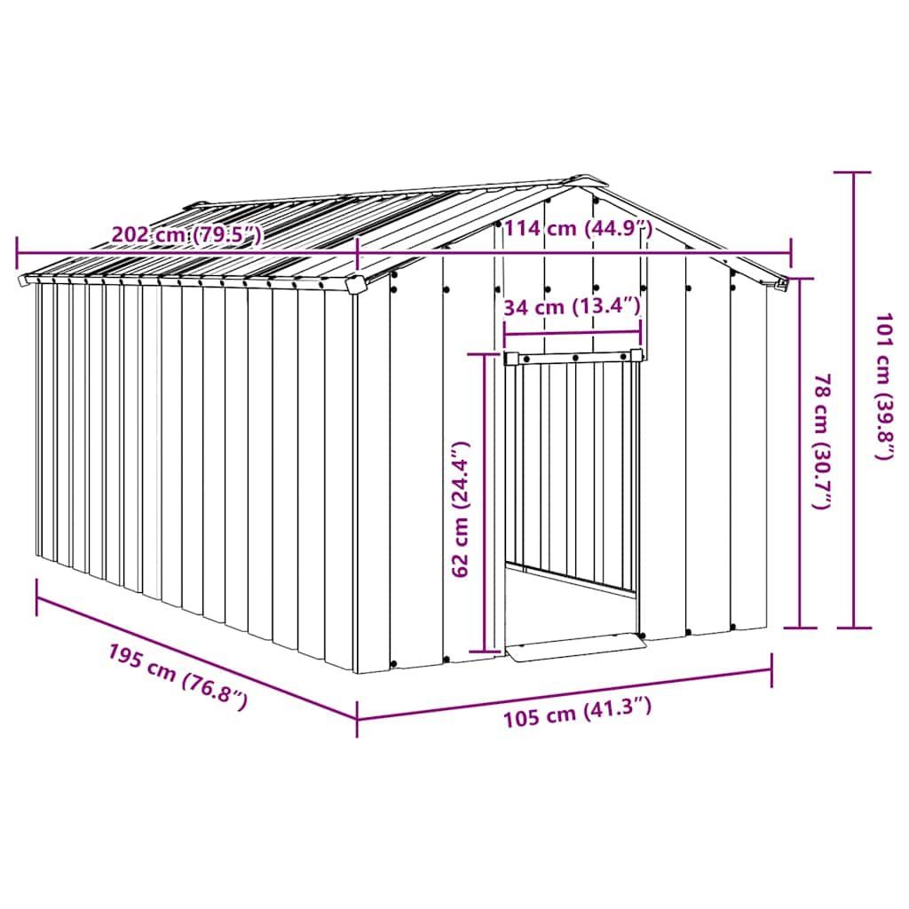 vidaXL vidaXL Hundehütte mit Dach 114x202x101 cm Verzinkter Stahl