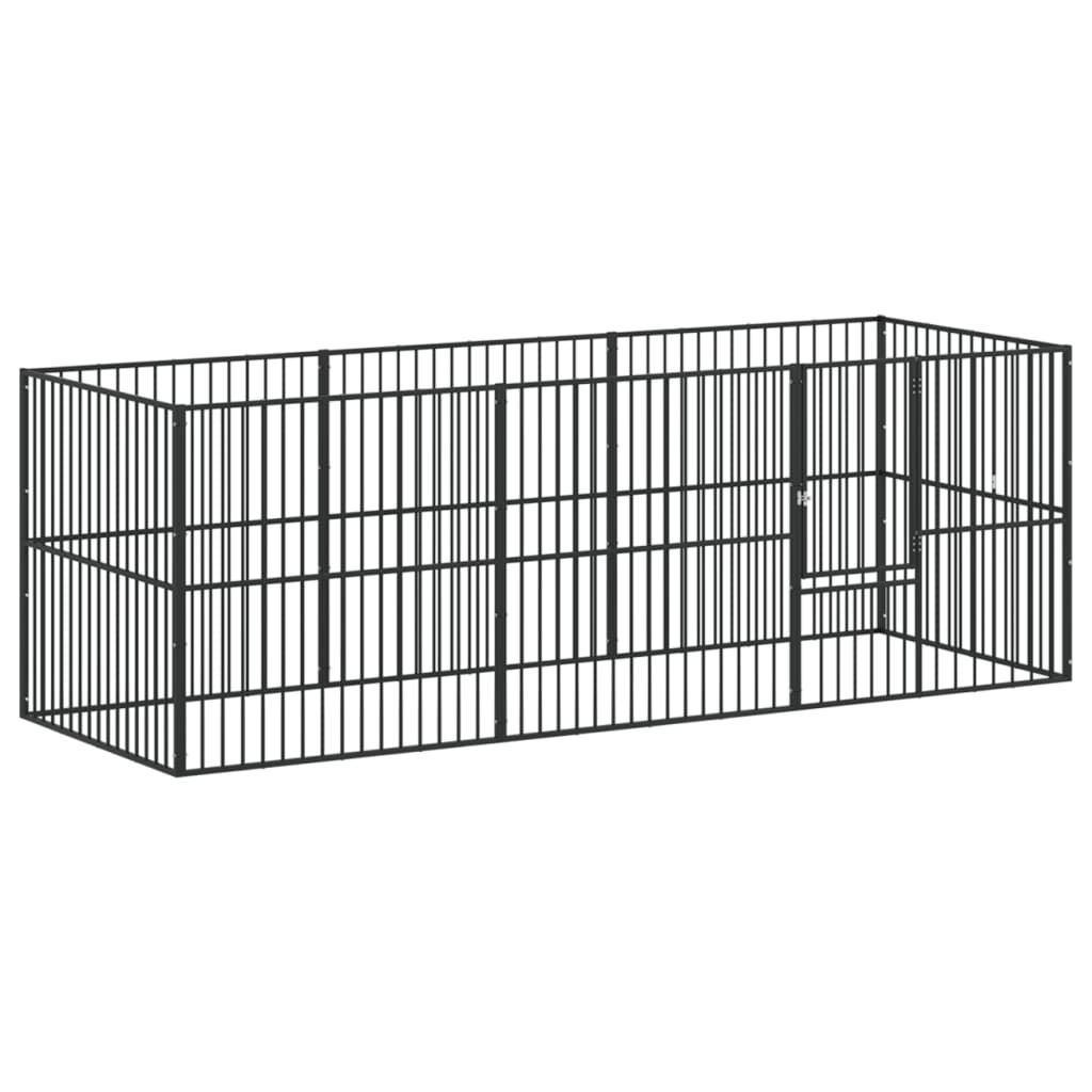 vidaXL vidaXL Hundelaufstall 8-tlg. Schwarz Verzinkter Stahl