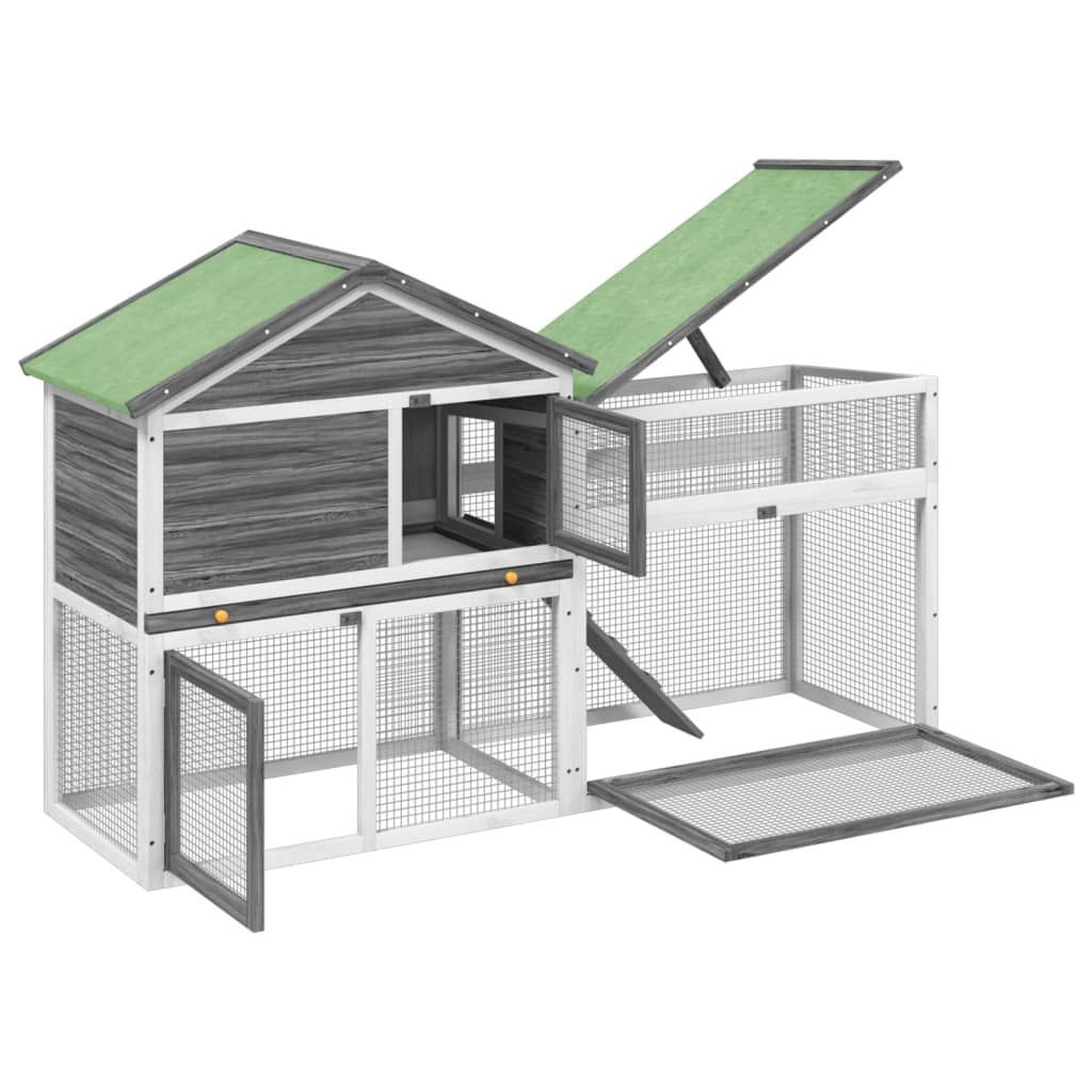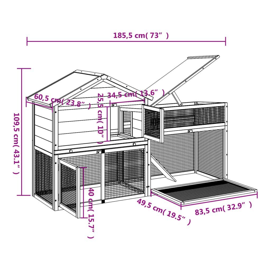 vidaXL vidaXL Kaninchenstall Grau 185,5x60,5x109,5 cm Massivholz Kiefer