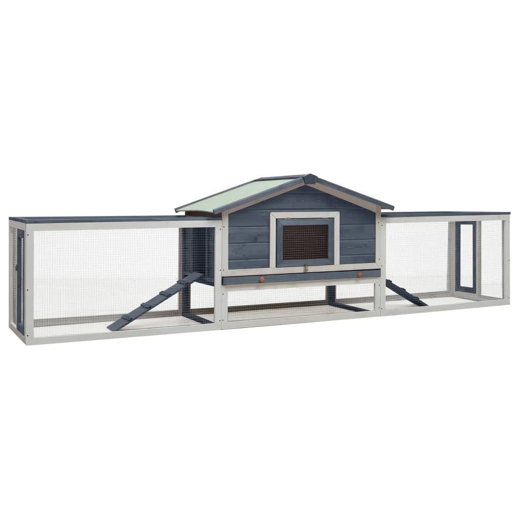 vidaXL vidaXL Kaninchenstall Grau 310x70x87 cm Kiefer & Tanne Massivholz