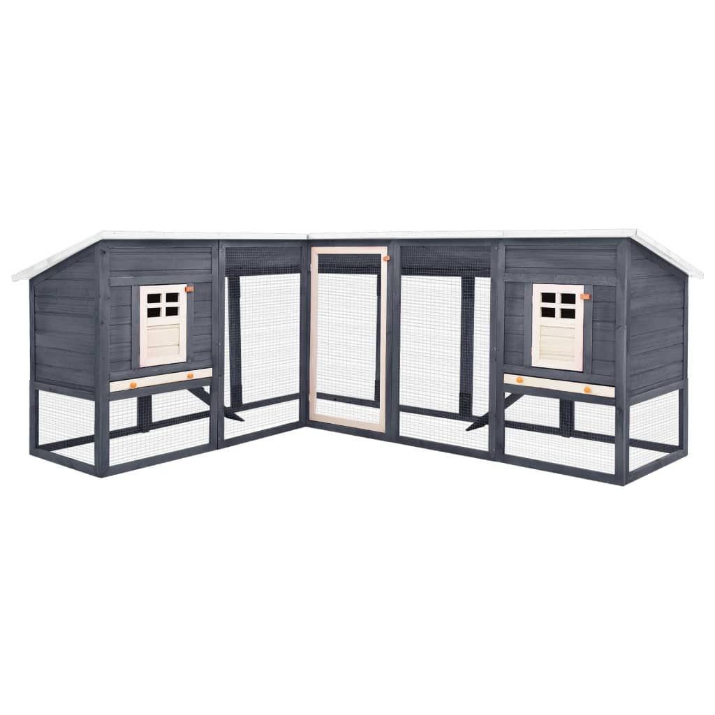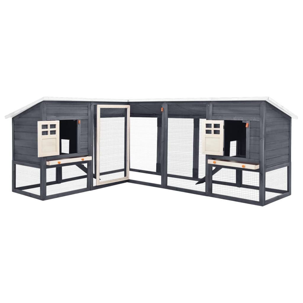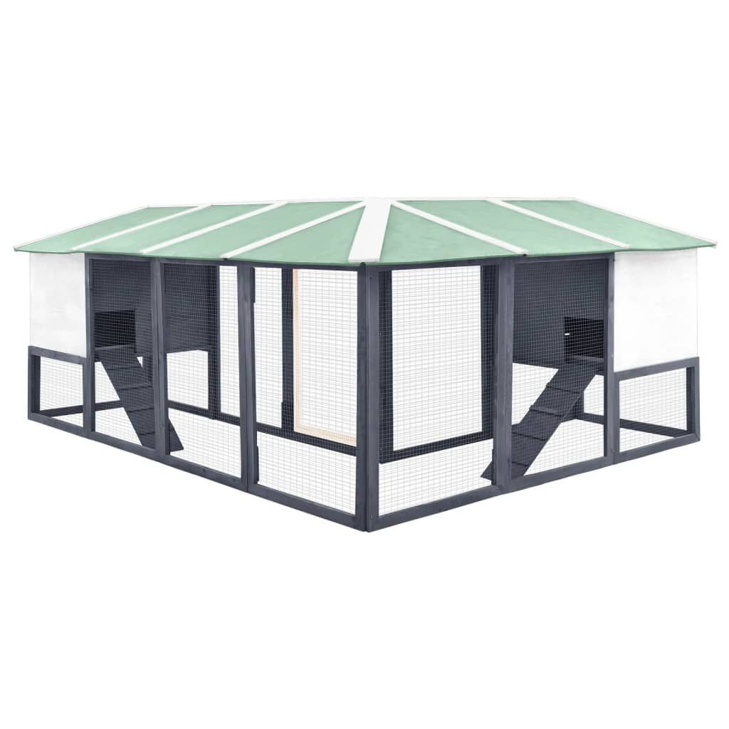 vidaXL vidaXL Kaninchenstall mit Freilauf Grau und Weiß Tanne Massivholz