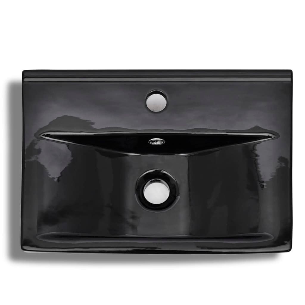 vidaXL vidaXL Keramik Waschbecken mit Hahn-/Überlaufloch Schwarz Rechteckig