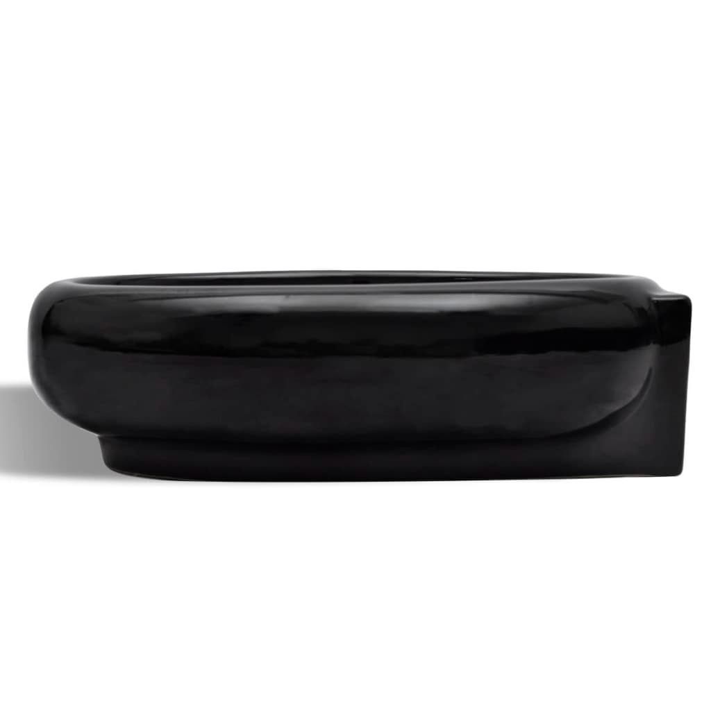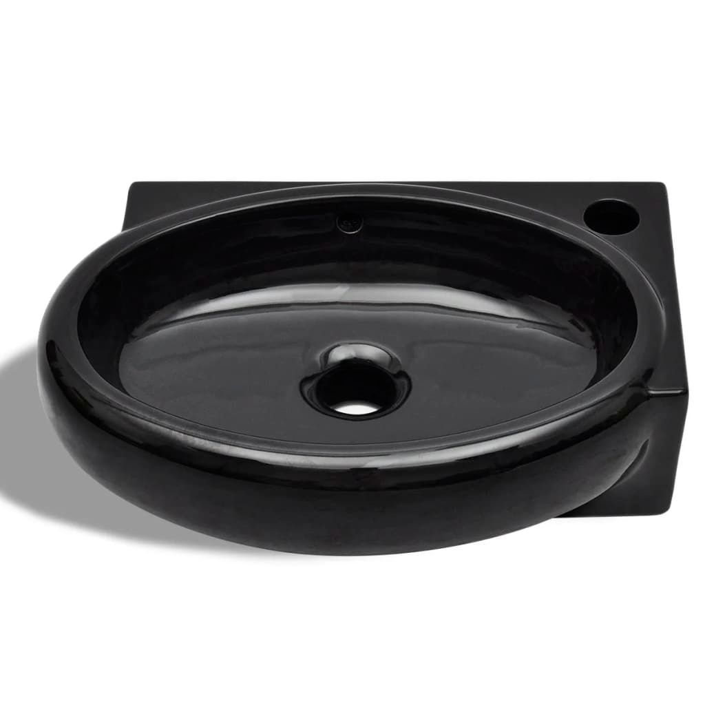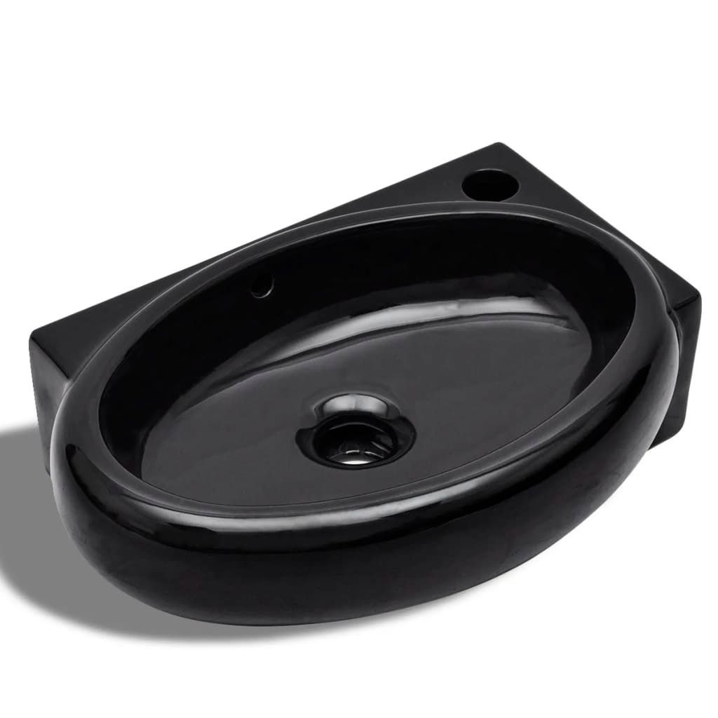 vidaXL vidaXL Keramik Waschbecken mit Hahn/Überlaufloch Schwarz Rund