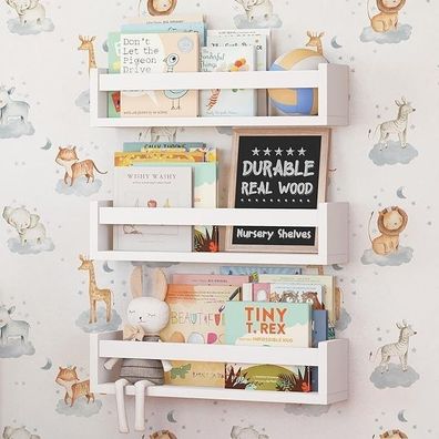 • NATURE Supplies Kinder Bücherregal 3er-Set, Wandregal für Bücher & Spielzeug, Weiß