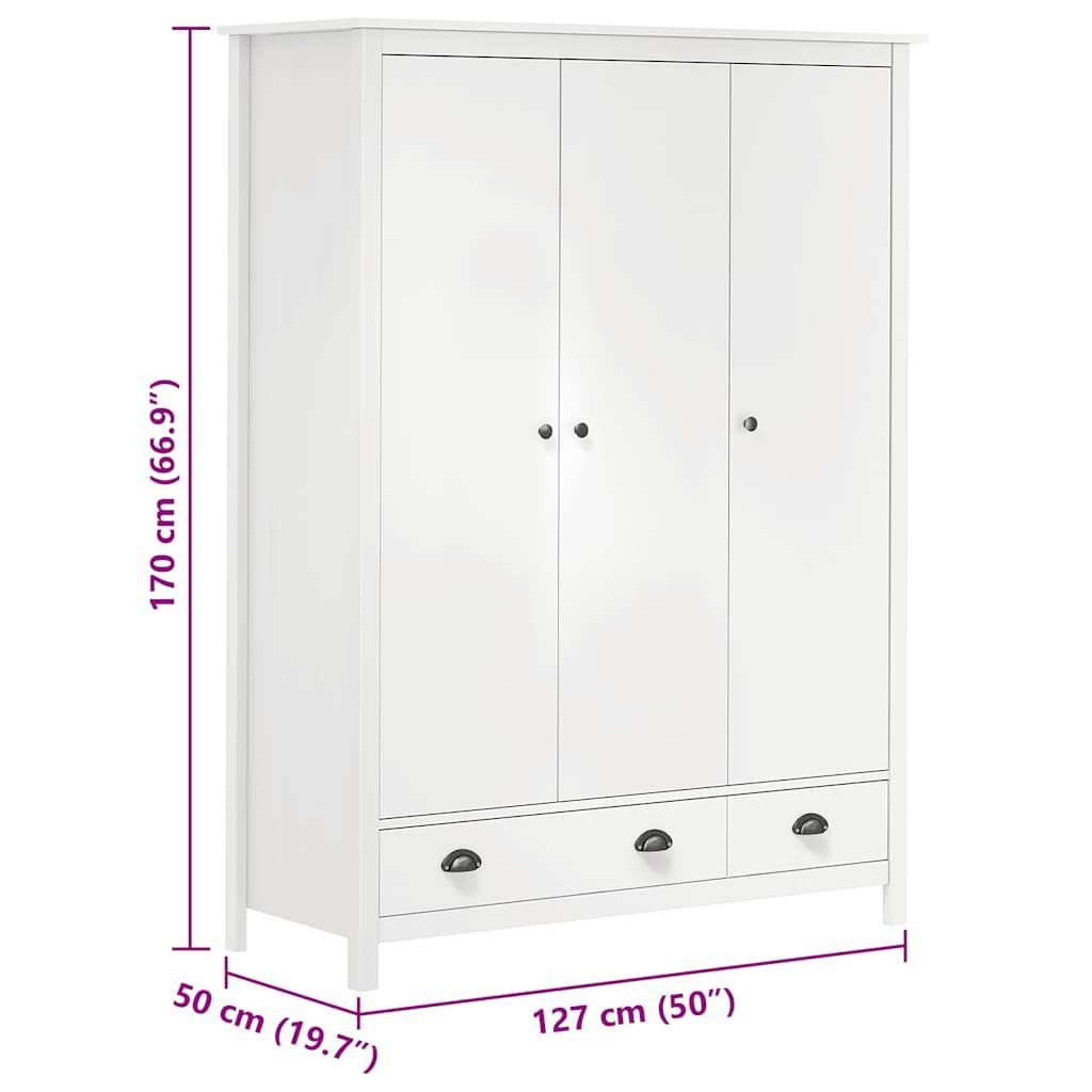 vidaXL vidaXL Kleiderschrank mit 3 Türen Hill Weiß 127x50x170 cm Kiefernholz