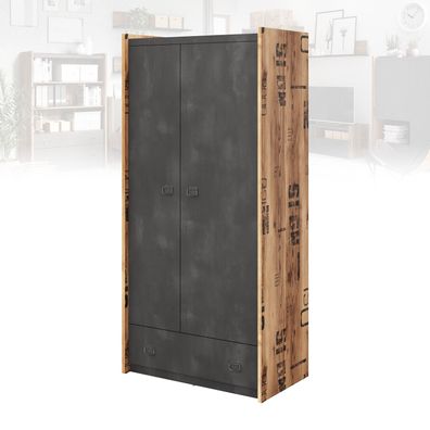 • Kleiderschrank FARGO FG-02 mit 2 Türen 90 cm Schrank Schublade Industriell
