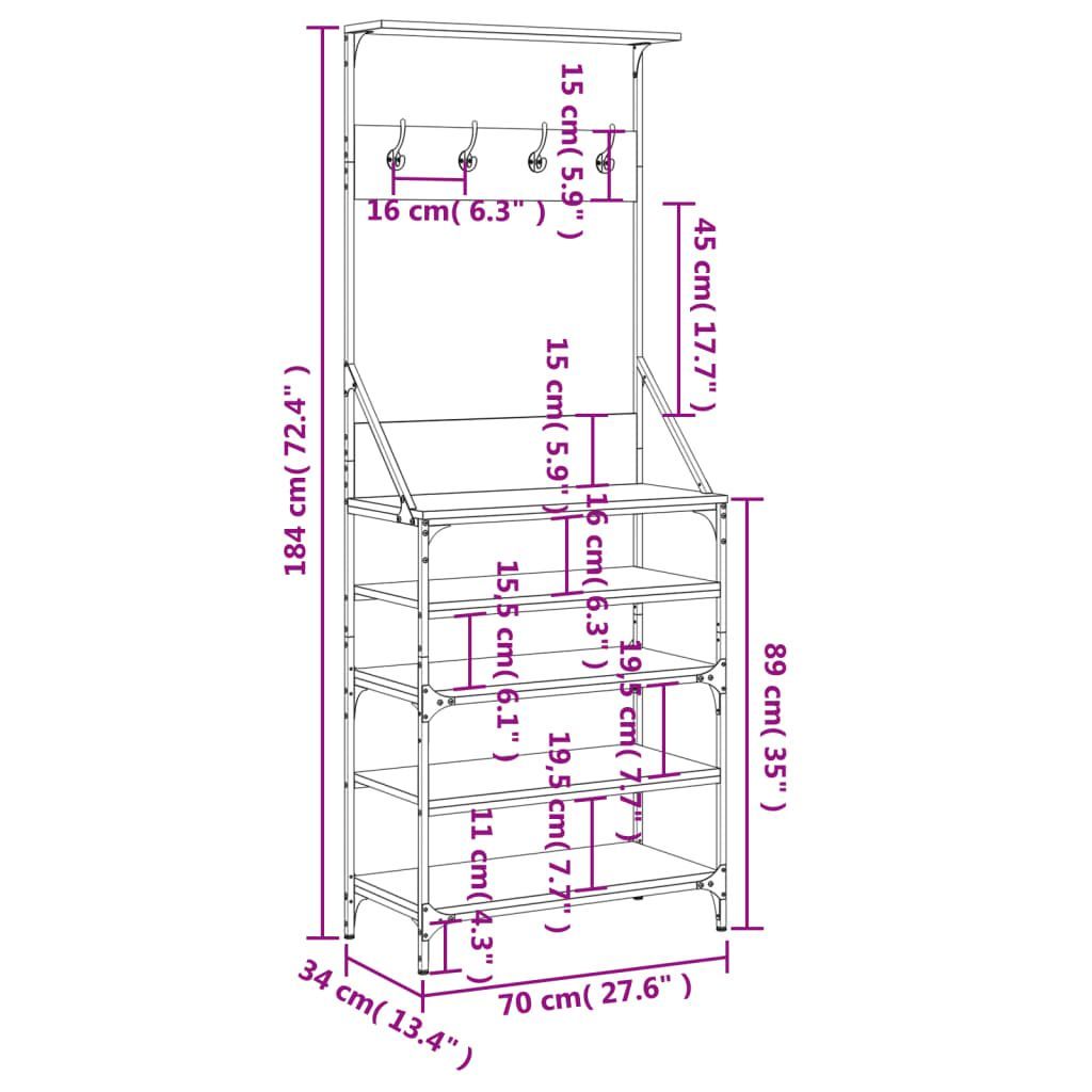 vidaXL vidaXL Kleiderständer mit Schuhablage Grau Sonoma 70x34x184 cm
