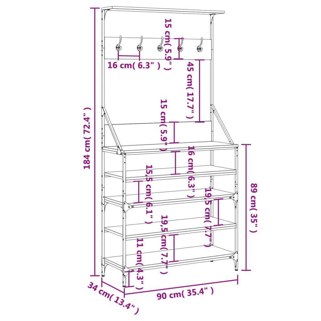 • vidaXL Kleiderständer mit Schuhablage Räuchereiche 90x34x184 cm