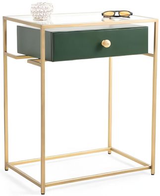 Eleganter Konsolentisch mit grüner Schublade und goldfarbenem Rahmen