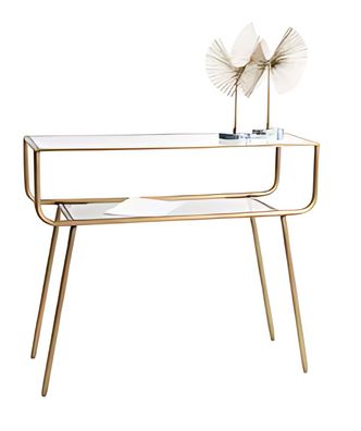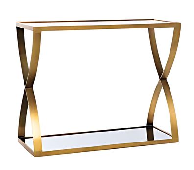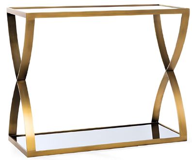 Konsolentisch mit goldenen Metallrahmen und eleganter Glasplatte