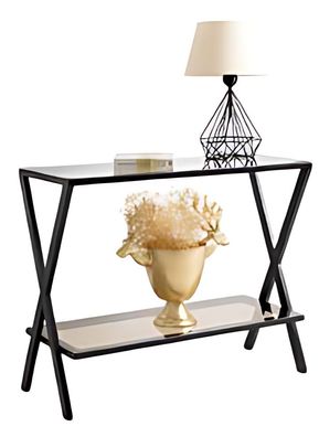 Konsolentisch mit schwarzem Metallrahmen und Glasplatte für Dekor