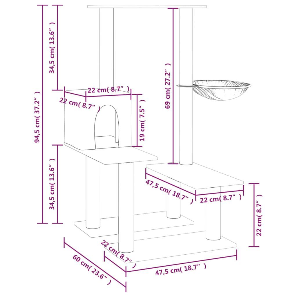 vidaXL vidaXL Kratzbaum mit Sisal-Kratzsäulen Creme 94,5 cm