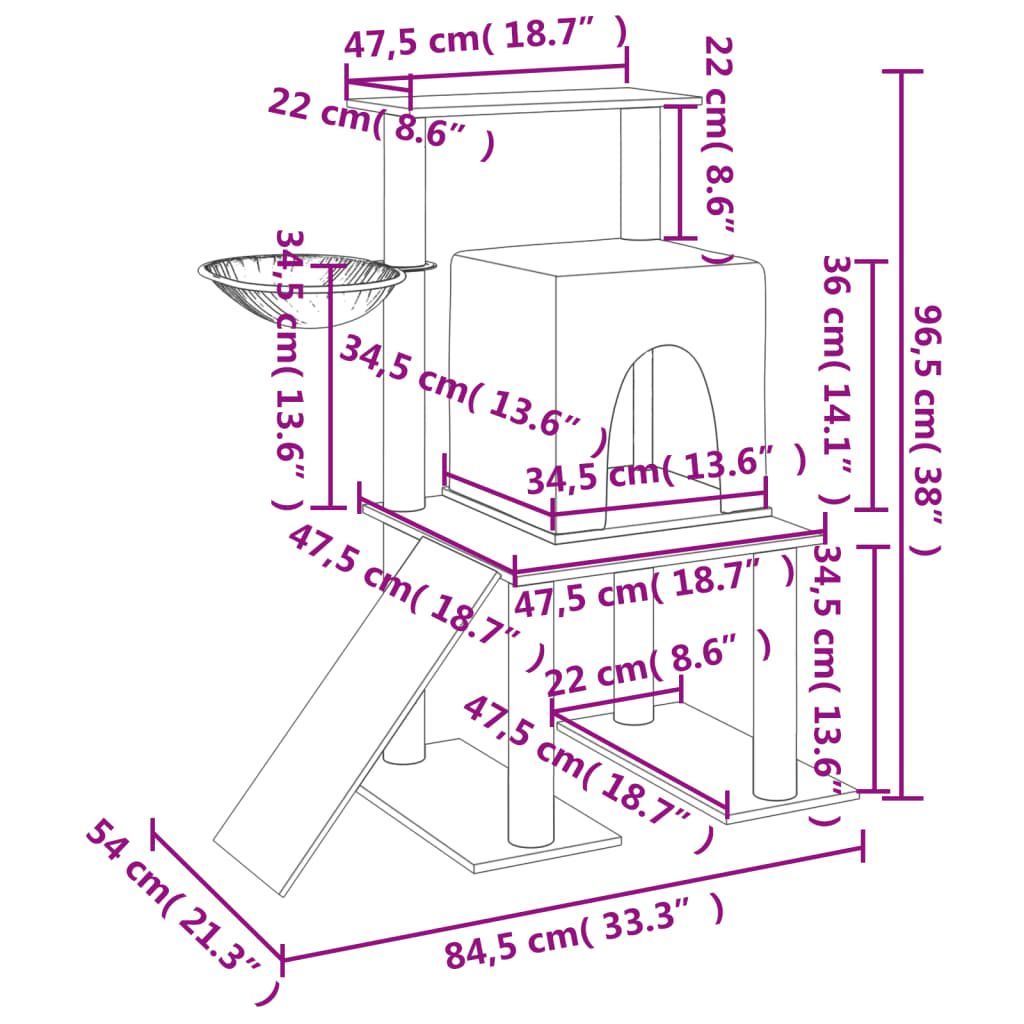 • vidaXL Kratzbaum mit Sisal-Kratzsäulen Dunkelgrau 85,5 cm