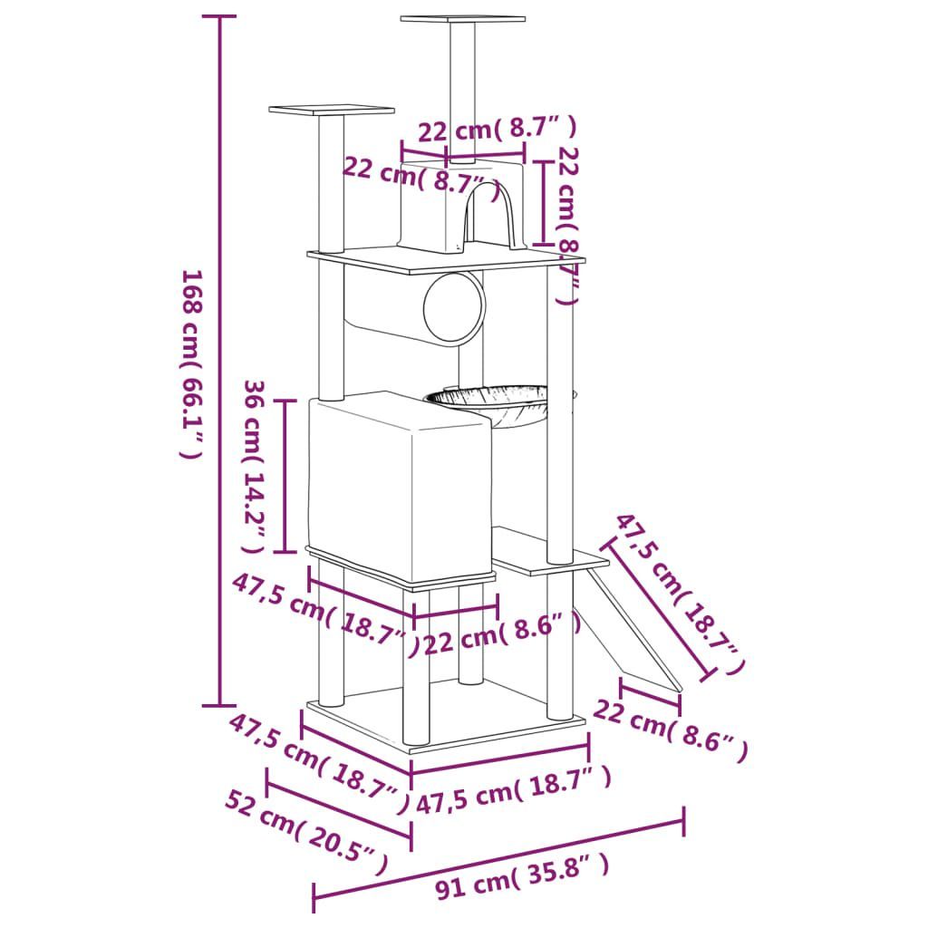 vidaXL vidaXL Kratzbaum mit Sisal-Kratzsäulen Hellgrau 168 cm