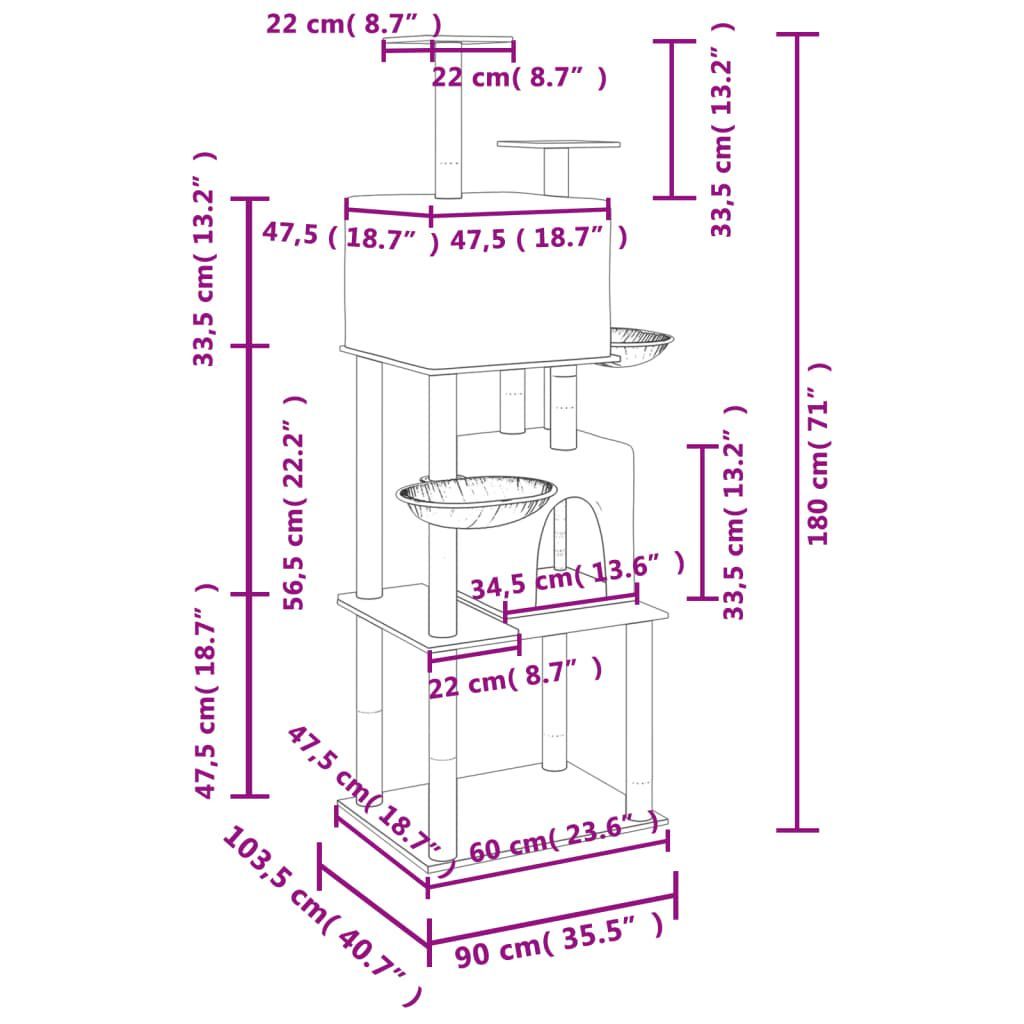 vidaXL vidaXL Kratzbaum mit Sisal-Kratzsäulen Hellgrau 180 cm
