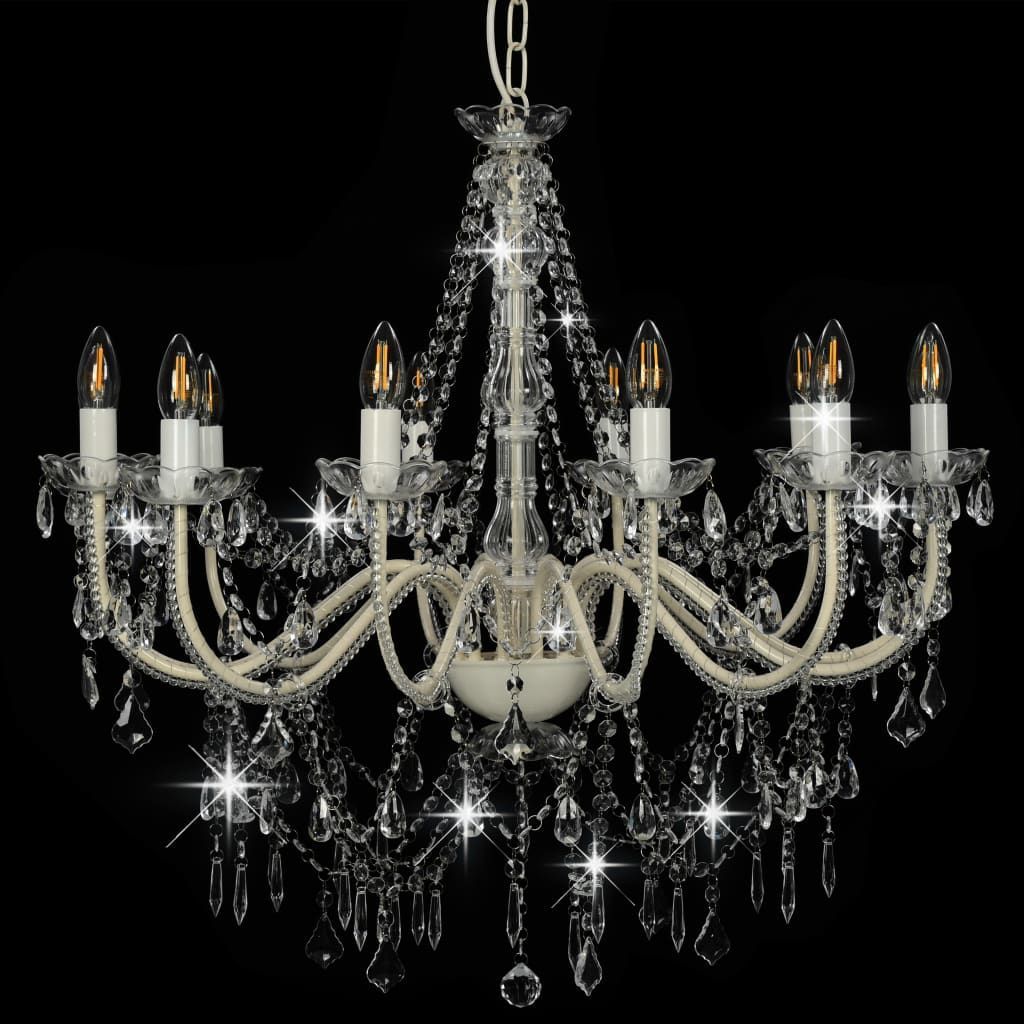 vidaXL vidaXL Kronleuchter mit Perlen Weiß 12 x E14-Fassungen