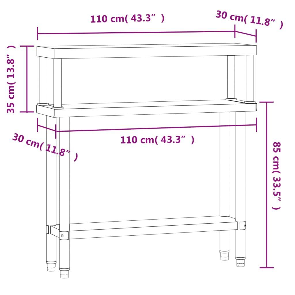 vidaXL vidaXL Küchen-Arbeitstisch mit Aufsatzboard 110x30x120 cm Edelstahl