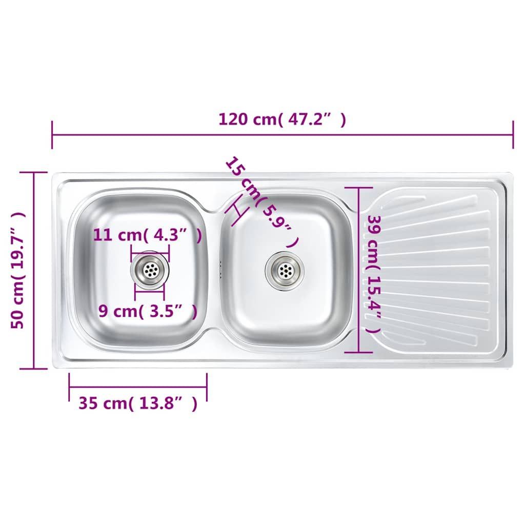 vidaXL vidaXL Küchenspüle Doppelbecken mit Sieb & Siphon Edelstahl