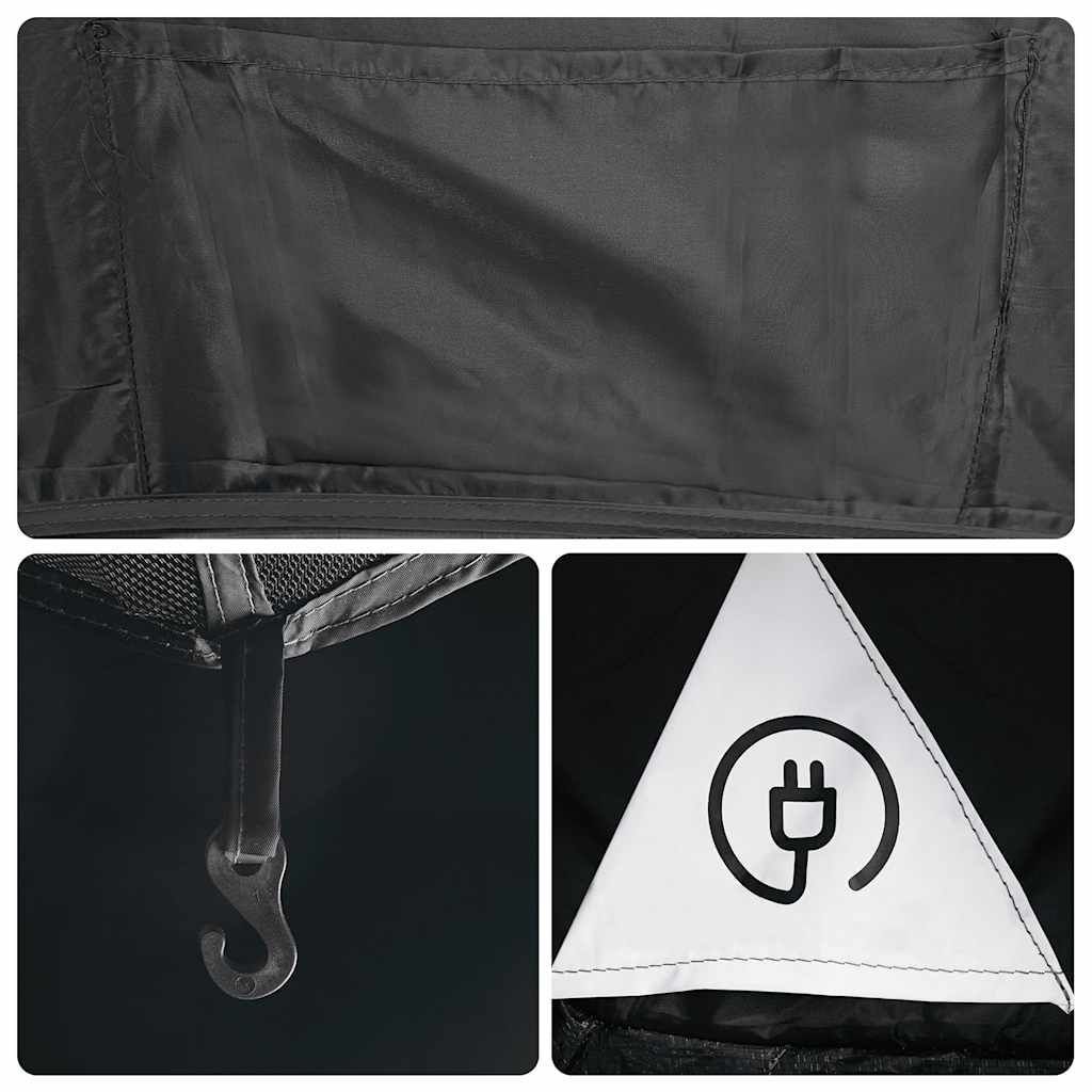 • Achtung Halten Sie alle Flammen und Wärmequellen von diesem Produktgewebe fern. Das Produkt ist nicht für Witterungsbedingungen wie starken Wind, Schneefall und extreme Wetterbedingungen geeignet.