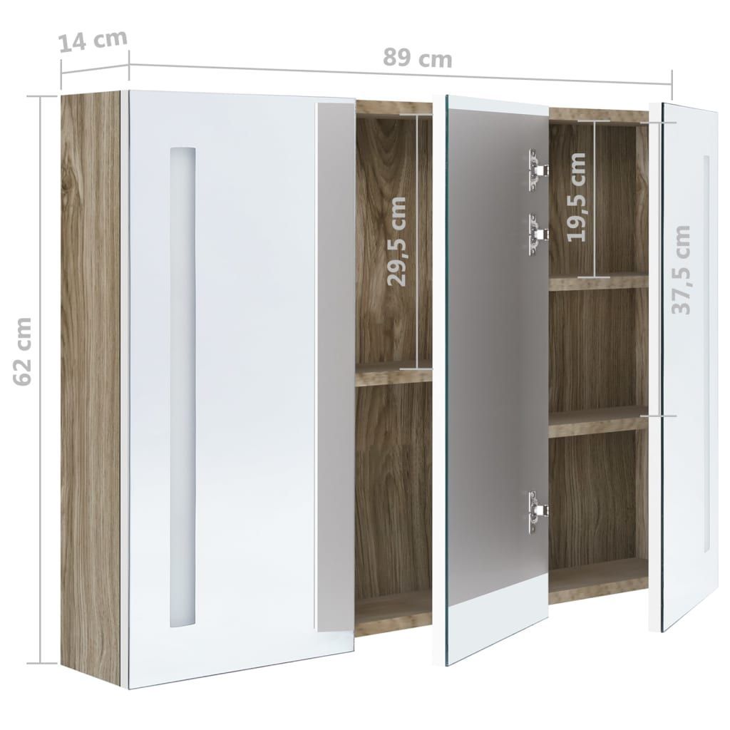 vidaXL vidaXL LED-Bad-Spiegelschrank 89x14x62 cm Weiß und Eichen-Optik