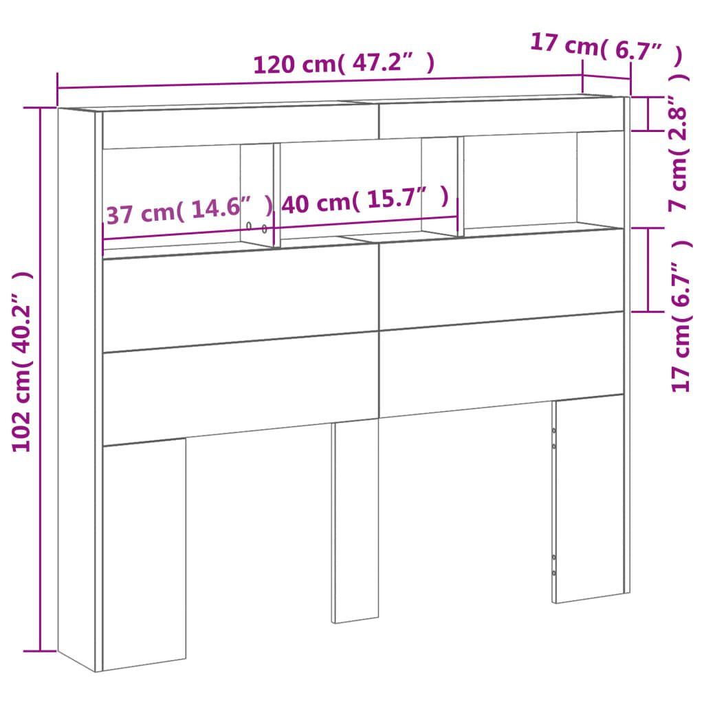 vidaXL vidaXL LED-Kopfteil mit Ablagen Grau Sonoma 120x17x102 cm