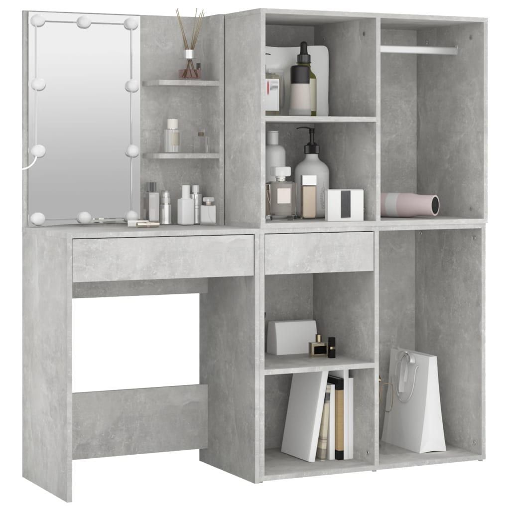vidaXL vidaXL LED-Schminktisch mit 2 Schränken Betongrau Holzwerkstoff