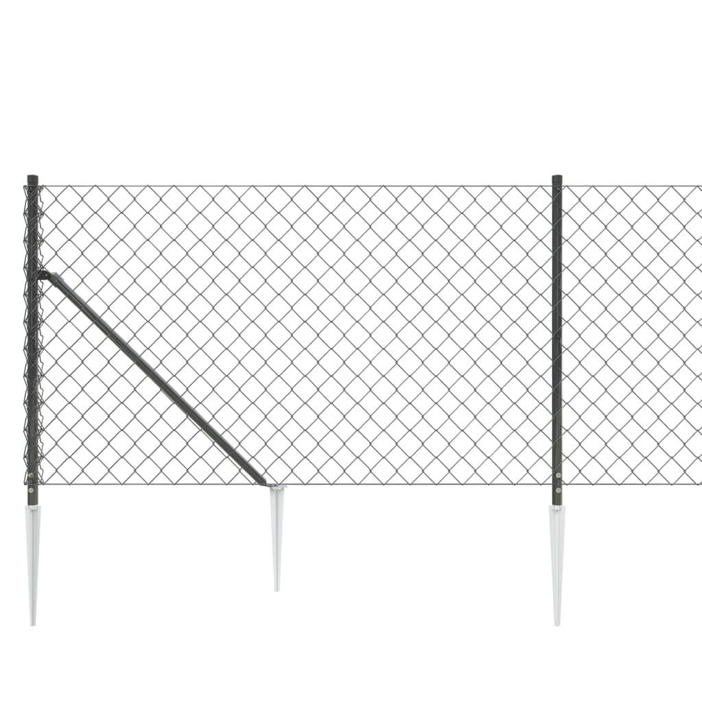 Farbe: Anthrazit Material: Verzinkter Stahl mit PVC-Beschichtung Maschendrahtzaun: Zaun-Größe: 0,8 x 25 m (H x L) Maschenweite: 60 x 60 mm Hauptdraht-Durchmesser: 1,3/2,2 mm (1,3 mm Stahldraht; 2,2 mm einschließlich PVC-Beschichtung) Seitendraht-Durchmesser: 1,6/2,5 mm (1,6 mm Stahldraht; 2,5 mm einschließlich PVC-Beschichtung) Zaunbeschläge: Pfosten (ohne Bodenhülse): 32 mm x 0,9 m (Durchmesser x H) Streben (ohne Bodenhülse): 32 mm x 0,86 m (Durchmesser x H) Abmessungen des Bindedrahts: 1,2/1,8