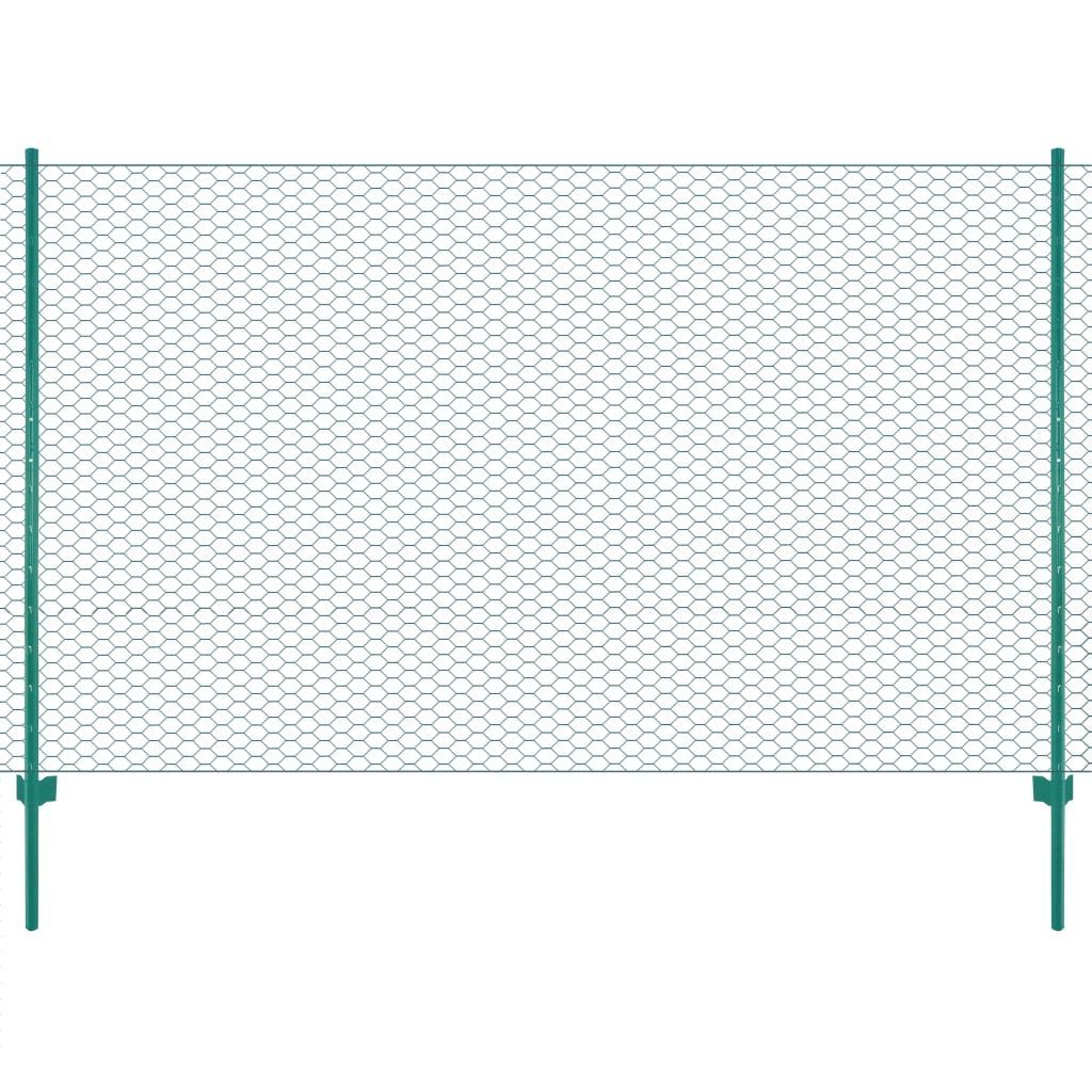 vidaXL vidaXL Maschendrahtzaun mit Pfosten Stahl 25 x 2 m Grün