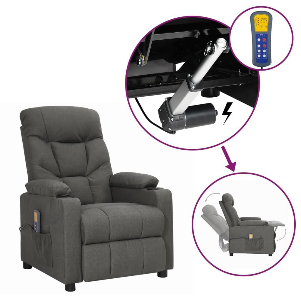 vidaXL vidaXL Massagesessel mit Aufstehhilfe Dunkelgrau Stoff