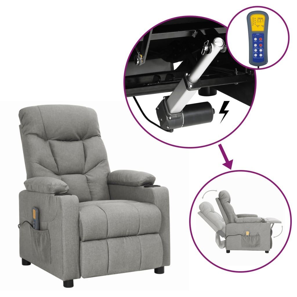 vidaXL vidaXL Massagesessel mit Aufstehhilfe Hellgrau Stoff