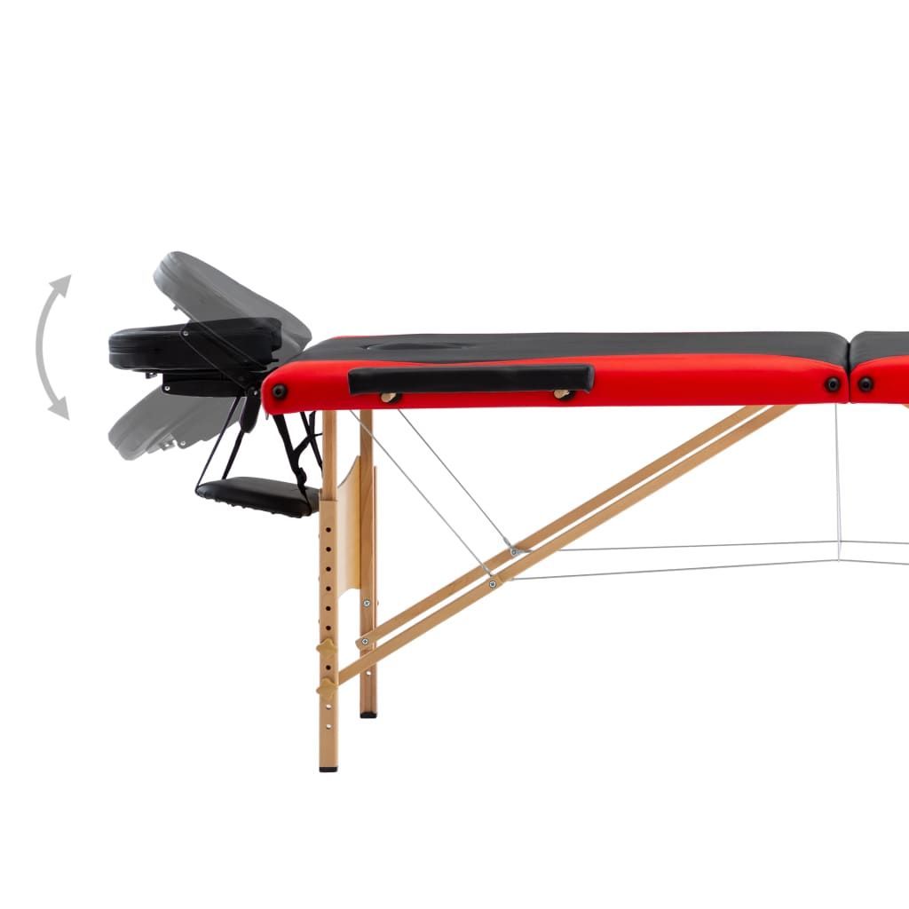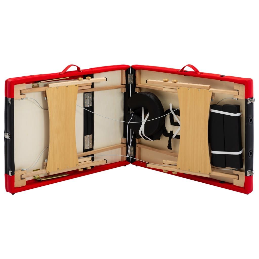 vidaXL vidaXL Massagetisch Klappbar 3 Zonen Holz Schwarz und Rot