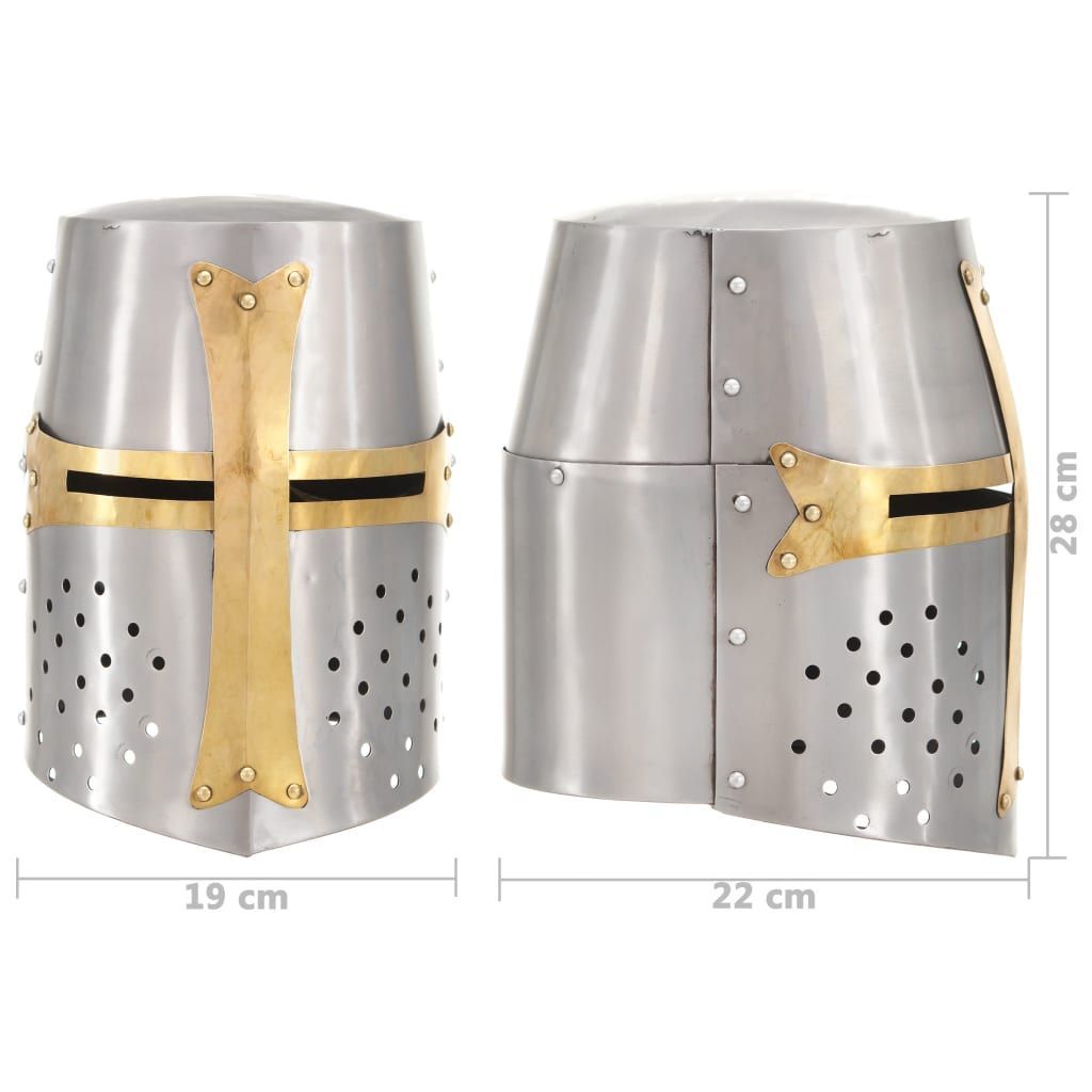 vidaXL vidaXL Mittelalterlicher Kreuzritter-Helm Antik Replik LARP Silbern Stahl