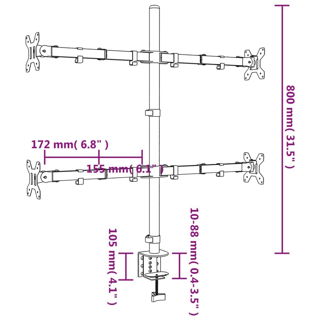 vidaXL vidaXL Monitorhalterung Schwarz Stahl VESA 75/100 mm