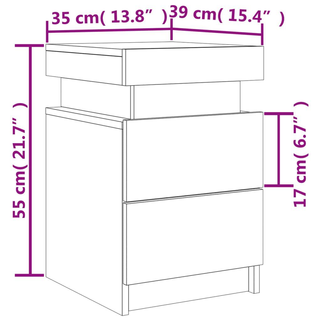 vidaXL vidaXL Nachttisch mit LED-Leuchten Braun Eiche-Optik 35x39x55 cm
