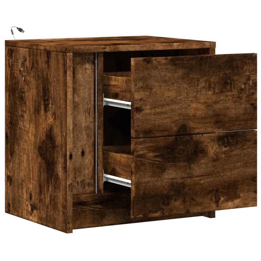 vidaXL vidaXL Nachttische mit LED-Leuchten 2 Stk. Räuchereiche Holzwerkstoff