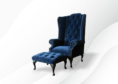 Sessel mit Hocker Designer Polstersessel Chesterfield Ohrensessel Neu
