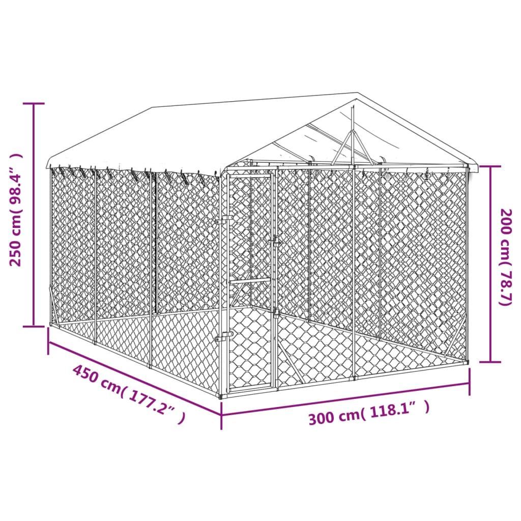 vidaXL vidaXL Outdoor-Hundezwinger mit Dach Silbern 3x4,5x2,5m Stahl Verzinkt