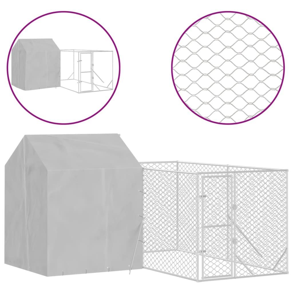 vidaXL vidaXL Outdoor-Hundezwinger mit Dach Silbern 4x4x2,5m Verzinkter Stahl
