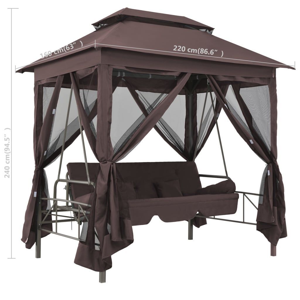 vidaXL vidaXL Pavillon Umwandelbare Schaukelbank Kaffeebraun
