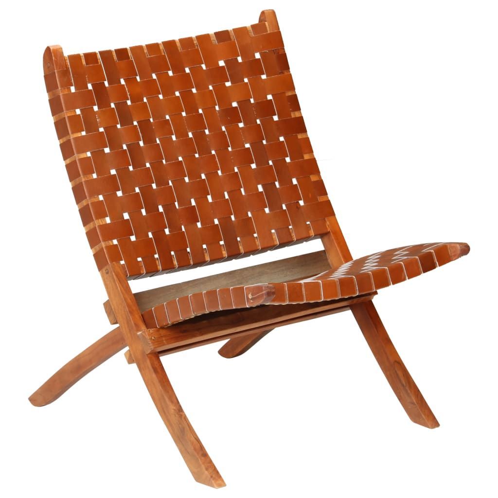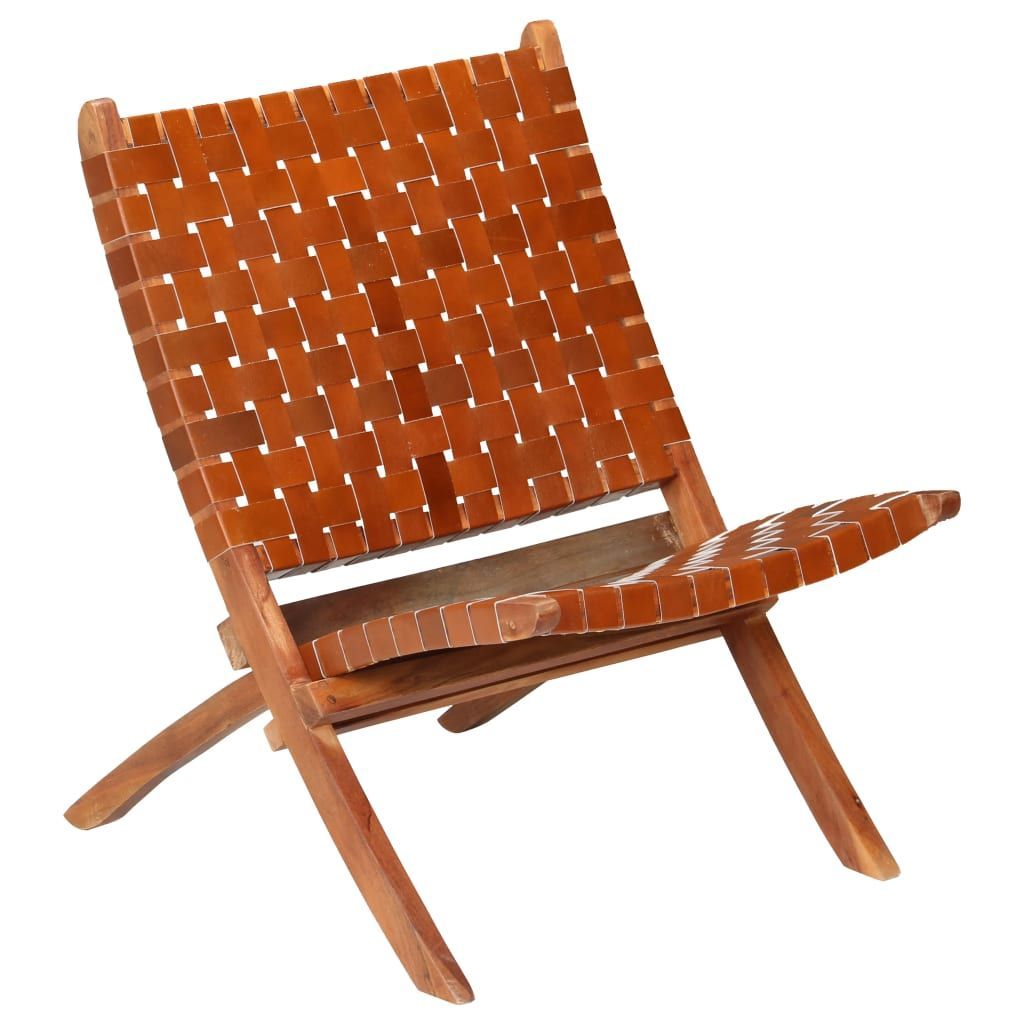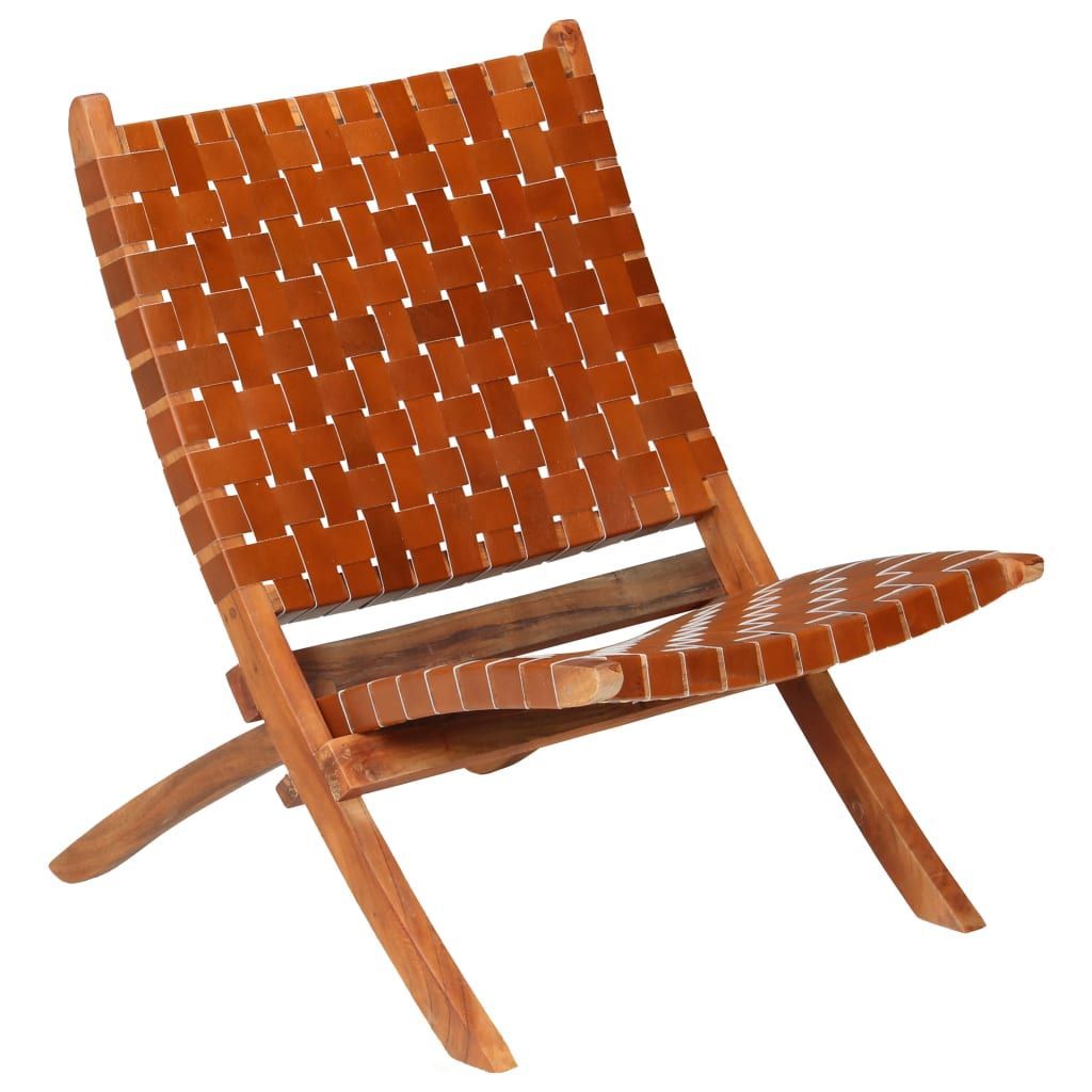 vidaXL vidaXL Relaxstuhl Klappbar Kreuzstreifen Braun Echtleder
