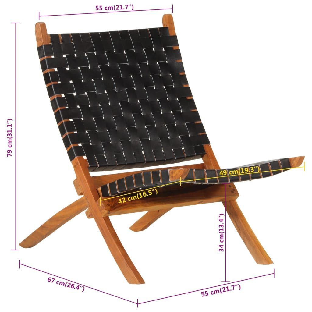 vidaXL vidaXL Relaxstuhl Klappbar Schwarz Echtleder