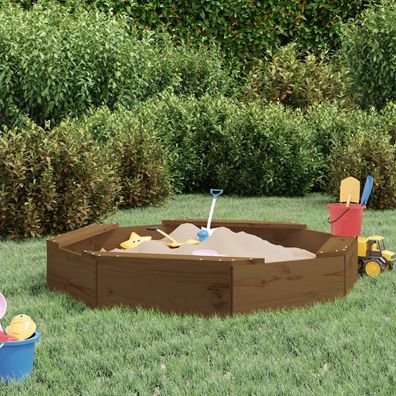• vidaXL Sandkasten mit Sitzen Honigbraun Achteck Massivholz Kiefer