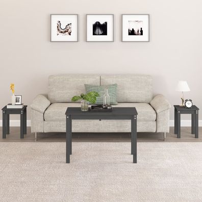 • vidaXL Satztische 3 Stk. Grau Massivholz Kiefer