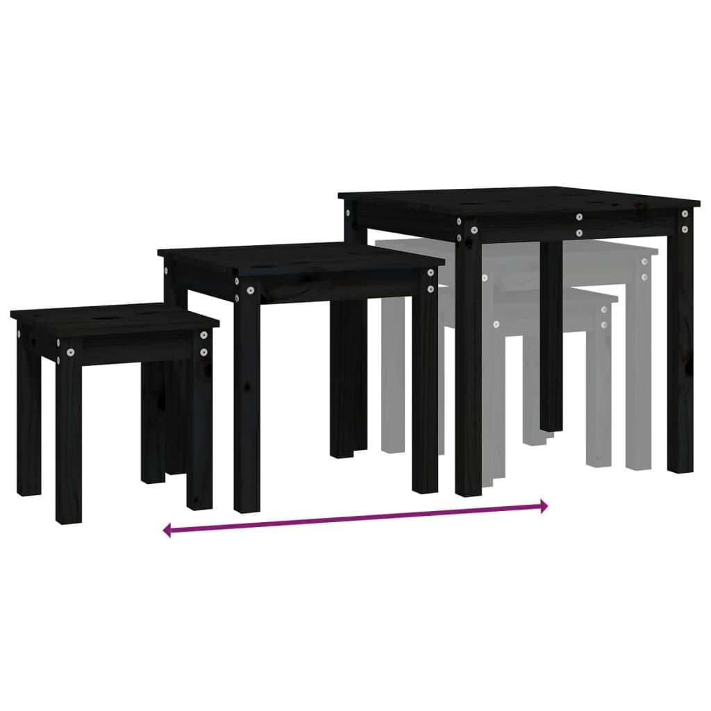 vidaXL vidaXL Satztische 3 Stk. Schwarz Massivholz Kiefer