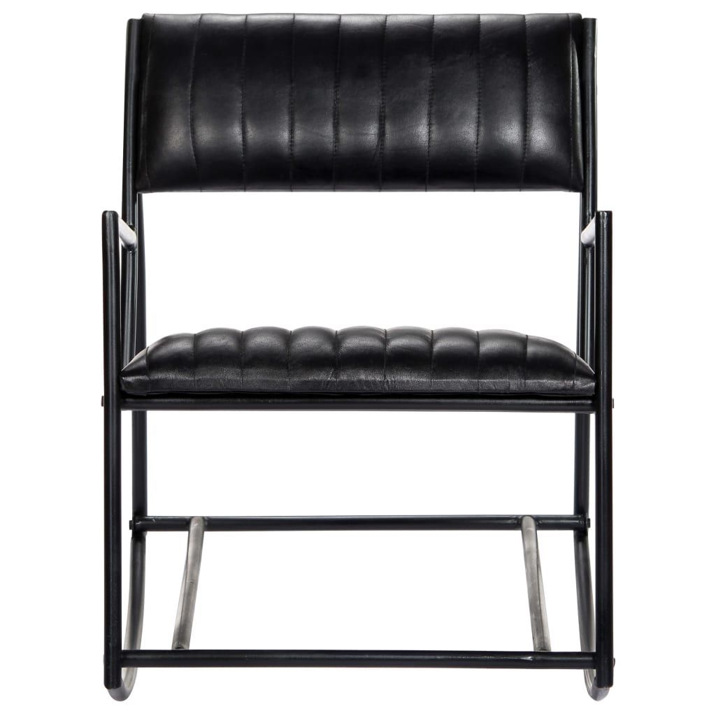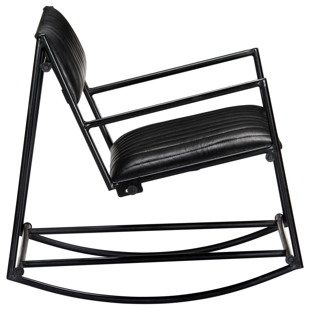 vidaXL vidaXL Schaukelstuhl Schwarz Echtleder