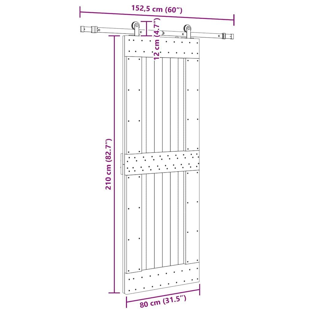 vidaXL vidaXL Schiebetür mit Beschlag 80x210 cm Massivholz Kiefer