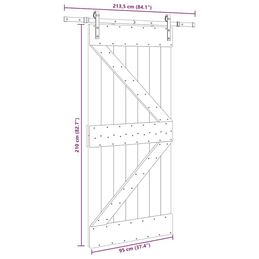 vidaXL vidaXL Schiebetür mit Beschlag 96x210 cm Massivholz Kiefer