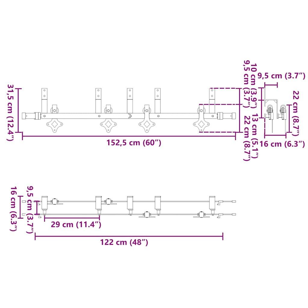 vidaXL vidaXL Schiebetürbeschlag-Set 152,5 cm Stahl Schwarz
