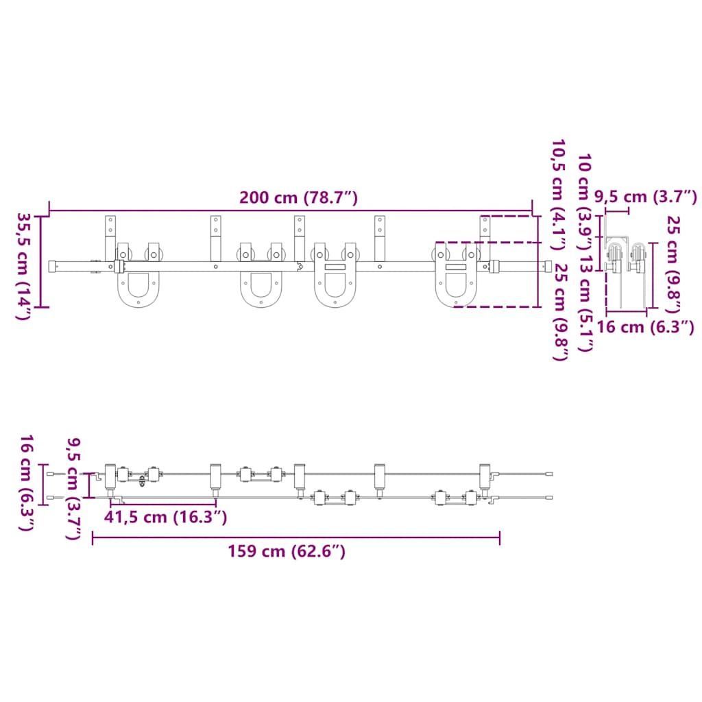 vidaXL vidaXL Schiebetürbeschlag-Set 200 cm Stahl Schwarz